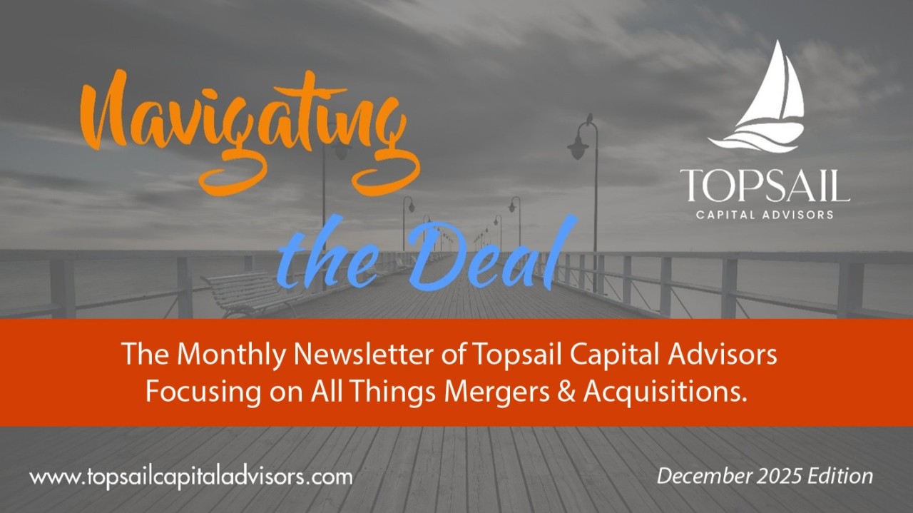 About Topsail Capital Advisors – Topsail Capital Advisors is a sell-side Mergers & Acquisitions advisory firm focusing on mid-size to lower middle-market, privately held businesses throughout the US. Topsail fills the gap between traditional main street business brokerage firms and the larger investment banking institutions. TCA core services includes valuations, exit planning, sell-side advisory, and capital solutions. Learn more at topsailcapitaladvisors.com.